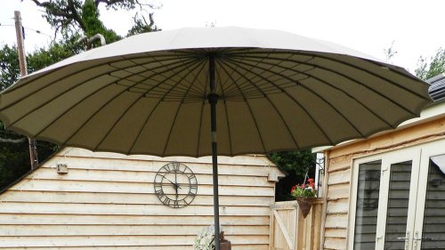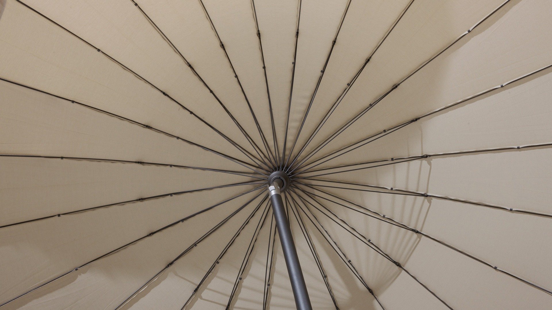 Dieser 4Seasons Outdoor Shanghai ist ein moderner und luxuriöser Sonnenschirm. Mit dem praktischen Drehsystem öffnen Sie den Sonnenschirm. Dieser Sonnenschirm ist auch neigbar. Der Stoff besteht aus Solefin, einem sehr farbechten Material. Der 4 Seasons Outdoor Shanghai Sonnenschirm ist eine Anspielung auf die Chinesischen Sonnenschirme. Dieser frivole Sonnenschirm ist ein echter Hingucker in Ihrem Garten.