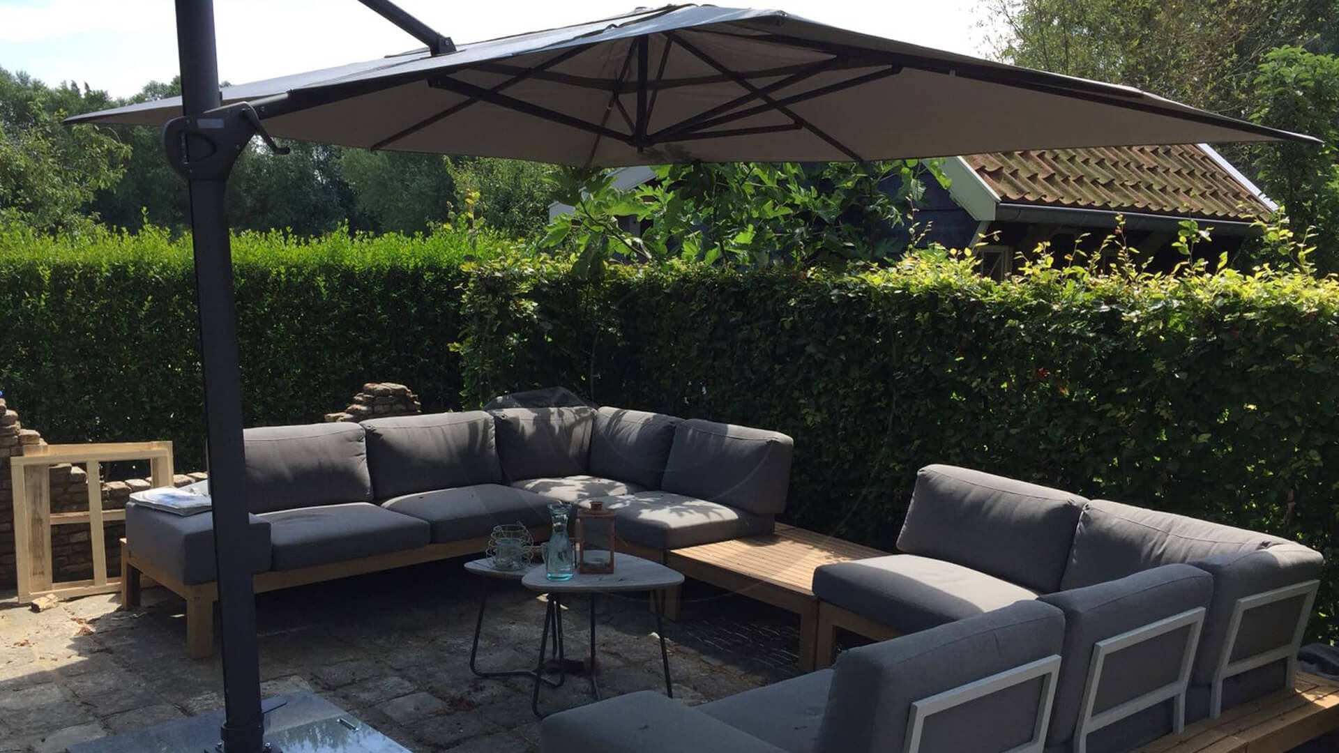 Jeder 4Seasons Outdoor Hängearmschirm kann sich auf der Basis drehen und nach hinten neigen, um die tiefstehende Sonne einzufangen.