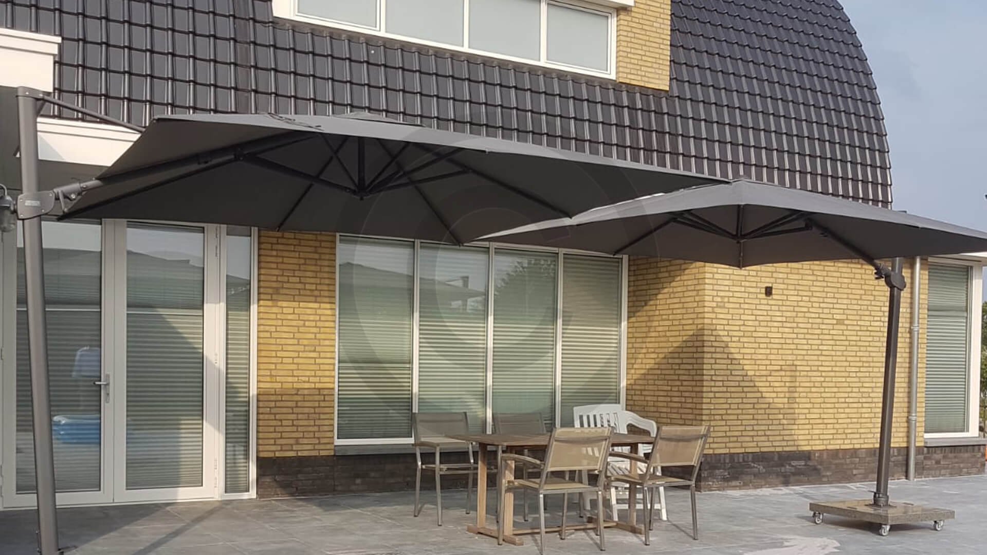 Wenn Sie Räder hinzufügen, kann der Sonnenschirm auch auf Ihrer Terrasse bewegt werden.