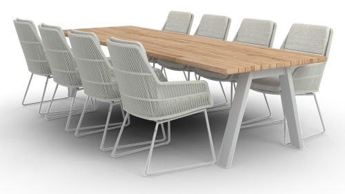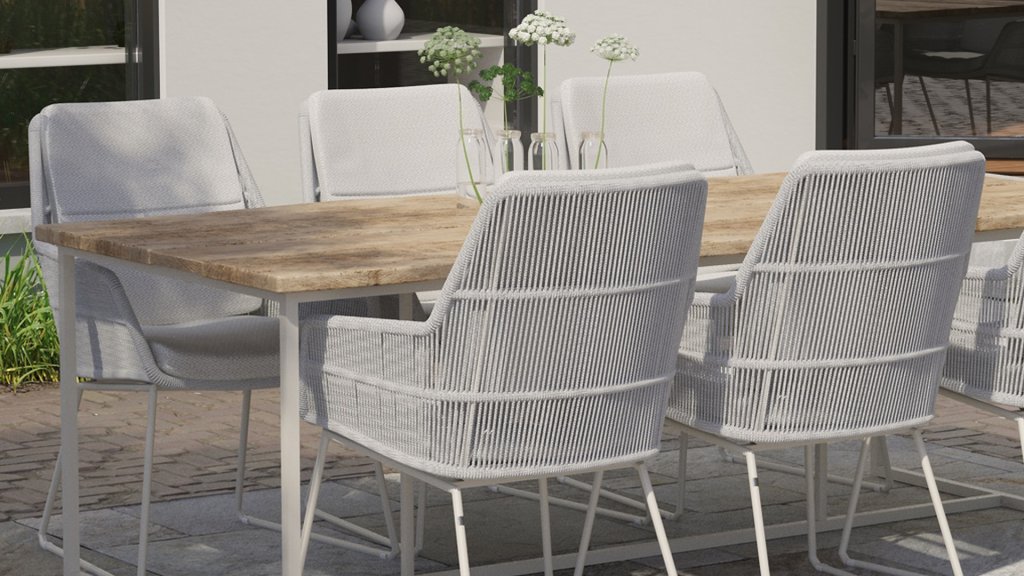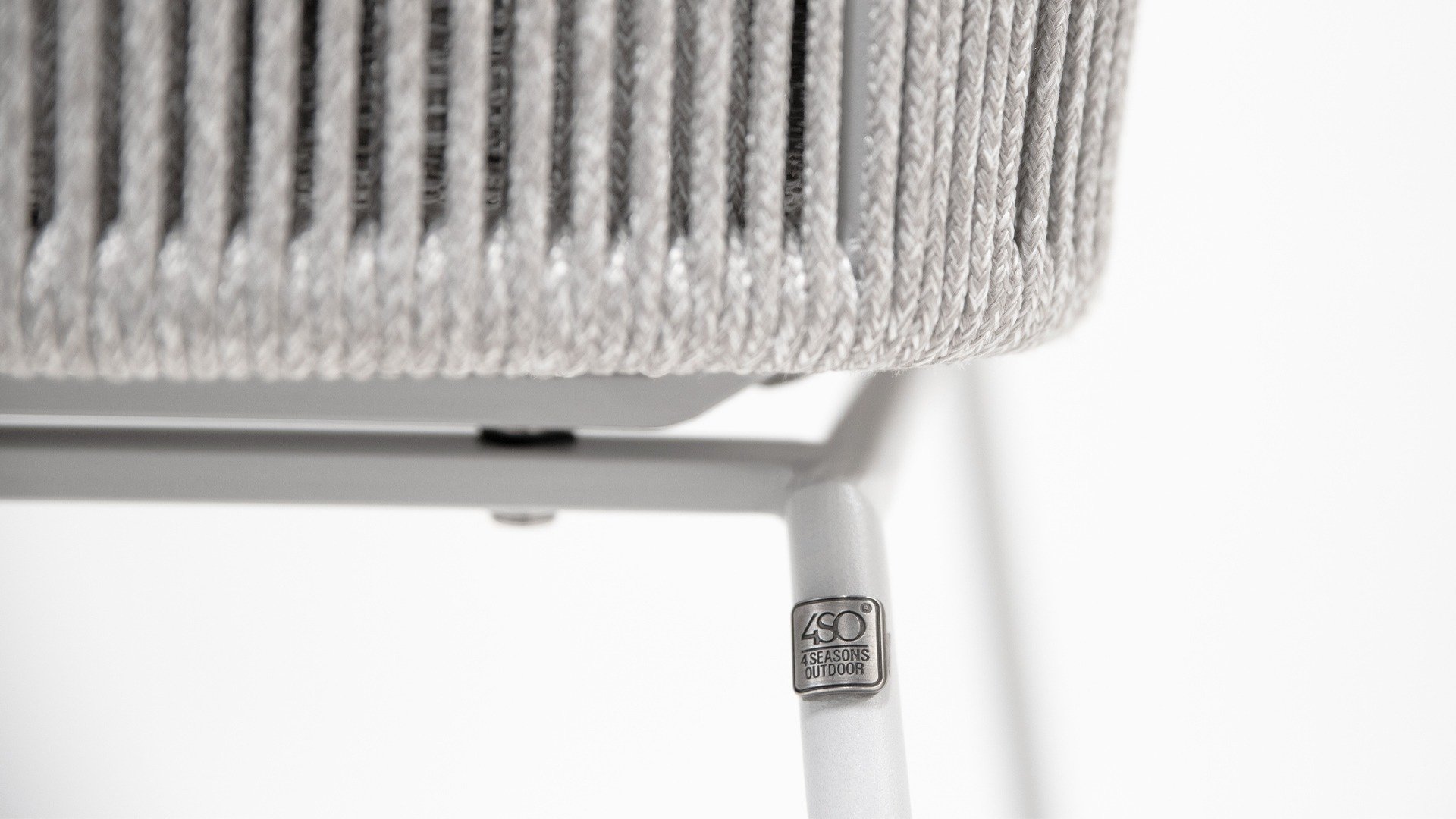 Die Marke 4 Seasons Outdoor produziert Produkte von höchster Qualität. Die Marke gibt auch eine lange Garantiezeit! Die Valencia Esszimmerstühle haben eine 5-jährige Garantie. Das Gestell des 4 Seasons Outdoor Valencia Esszimmerstuhls besteht aus Edelstahl. Der Edelstahl ist pulverbeschichtet, damit er nicht rostet. Der Rastplatz besteht aus Seil. Seil ist ein schönes weiches Material mit einem modernen Look. Das Seil ist sehr stark, UV-beständig und hat eine sehr geringe Zugfestigkeit. Das Seil kann auch wenig oder keine Feuchtigkeit und Schmutz aufnehmen. Das Kissen besteht aus Olefingewebe. Olefine sind Stoffe, die gegen ultraviolette Strahlung und Temperaturunterschiede beständig sind und schnell trocknende Stoffe sind.