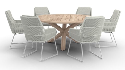 Valencia stammt von der Marke 4 Seasons Outdoor. Der Rahmen besteht aus pulverbeschichtetem Edelstahl. Der Stuhl ist mit allen Wetterseilen ausgestattet. Das Seil kann immer draußen bleiben, ohne Staub anzuziehen. Wenn sich das Kissen nicht auf dem Stuhl befindet, sieht der Stuhl wunderschön aus. Das Sitzkissen ist grau grau. Olefinstaub wurde verwendet. Dies ist ein nicht verblassender Stoff. Dieser Stoff ist auch wetterbeständig. Der 4-Jahreszeiten-Esszimmerstuhl Valencia ist ein wunderschön geformter Stuhl. Die runde Form und das weiche Kissen machen es zu einem bequemen Stuhl. Dieses neue Produkt der 4 Seasons Outdoor-Serie ist in zwei Farben erhältlich: Platingrau und Gefriergrau. Der Valencia Esszimmerstuhl bietet eine hervorragende Unterstützung für die Rückenlehne des Stuhls und kann perfekt mit verschiedenen Esstischen kombiniert werden!