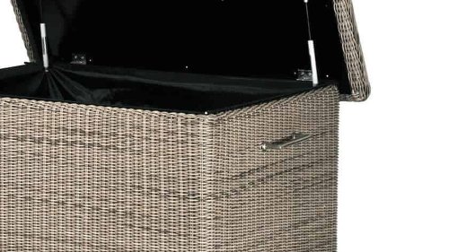 Die Aufbewahrungsbox Wales von 4Seasons hat die Größe XL und ist ideal für die Aufbewahrung Ihrer Loungekissen. Am Deckel sind 2 Gasfedern die das Öffnen und Schließen erleichtern. Die Kissenbox Wales ist mobil mit dem Edelstahlgriff können Sie die Box einfach von ihrem Platz fahren.