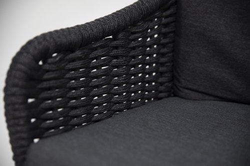 Der Rahmen des Wing 4SO Dining fließen in einander und dies wird fertiggemacht mit dem einzigartige Rope Geflechte. Rückenlehne und Sitzfläche ist mit dieser starken Rope geflochten und gibt ein fest, aber bequem Sitzen. Die schönen Rahmen sind aus Aluminium. Ein schönes, flaches Seil (Rope) mit einem weichen und komfortablen Aussehen wurde in den Rahmen eingewebt. Die runden und Eckige Formen erhalten das Gleichgewicht dieses modernen Designs. Der Rahmen ist eine spielerische und zerbrechlich Zusammenspiel von glatten Linien, die wieder zusammen kommen und auseinander gehen, ein fest für die Augen! Um es komplett zu machen, gibt es auch einen passenden 4SO Wing Lounge Serie.