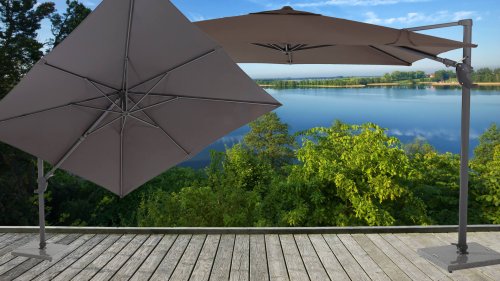 Mit einem schwebenden Sonnenschirm können Sie in alle Richtungen gehen. Ein schwebenden Sonnenschirm kann sowohl über Ihrer Lounge als auch über Ihren Gartenmöbeln verwendet werden. Die Ampel-Sonnenschirme sind alle nach hinten neigbar, sodass eine tief stehende Sonne abgeschirmt werden kann. Das Gestell befindet sich an der Seite, und dieser Sonnenschirm hat oft auch die Möglichkeit, ihn zu neigen, zu drehen ( Rotationssystem ) und seitlich zu kippen ( Siesta Premium).