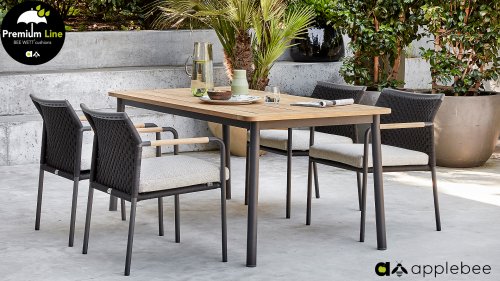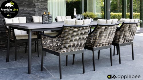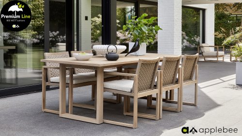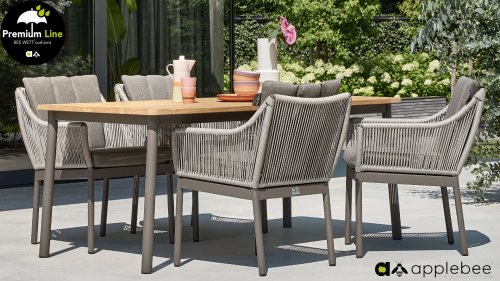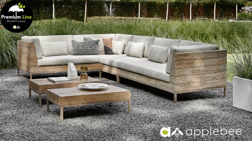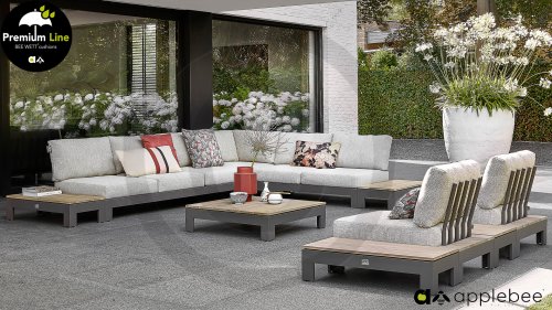 APPLEBEE ist eine Gartenmöbelmarke mit einem einzigartigen holländischen Design. Sako Wijma, Designer bei Apple Bee, versteht es, die Wünsche aller in überraschende Designs umzusetzen. Er erfindet und entwickelt alle Möbel selbst, wodurch Apple Bee garantiert einzigartig in seiner Klasse ist. Originelle Designs haben Apple Bee zu einer führenden Marke in der Outdoor-Möbelbranche gemacht. Das Design konzentriert sich auf den Zweck, die Funktion. Das Zusammenspiel der Linienführung und der verwendeten Materialien machen die Möbel einzigartig. Deshalb bleiben Apple Bee Gartenmöbel auch nach Jahren eine Augenweide, denn pure Designqualität ist zeitlos. Alle Sitz- und Rückenkissen haben einen hervorragenden Sitzkomfort. Außerdem verfügen diese über die einzigartige Bee Wett-Technologie. Dies stellt sicher, dass Ihr BEE WETT-Kissen spektakulär schneller trocknet als andere Kissen.