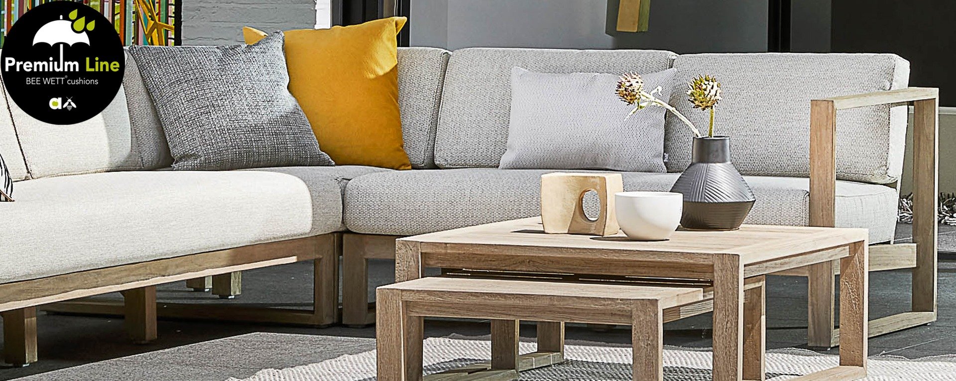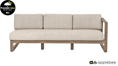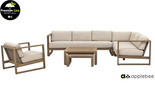 Das wunderschöne Design des Applebee Antigua Loungeset basiert sich hauptsächlich auf eckigen, kubistischen Formen, was diesem Set einen so schönen, schlanken Charakter verleiht. Sowohl das Loungeset als auch der Tisch bestehen aus Teakholz mit coastal finish, was ihm ein leichtes Aussehen verleiht. Der Sitz und die Rückenlehne bestehen aus Korbwaren aus 'Gürtel und Seil' in der Farbe Taupe. Und natürlich gibt es für den Sitzkomfort und zur Vervollständigung des Sets dicke Kissen mit unserer eigenen BEE WETT®-Technologie.