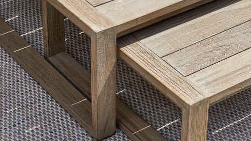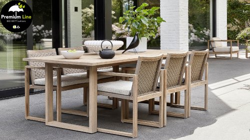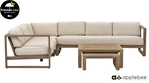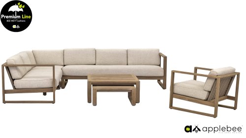 Die Applebee Antigua-Kollektion besteht aus einem Esstischgruppe, einem Loungegruppe und einer Sonnenliege. Diese Möbelkollektion ist aus Teakholz mit einem Coastal Farbfinish und einem Geflecht aus echter Handwerkskunst gefertigt. Dieses Lounge-Set ist unverzichtbar für Ihren Garten. Die extrem dicken Kissen in der Farbe ‚Natural Oak‘ sorgen dafür, dass Sie sich vollkommen entspannen können und sind durch unsere eigene Technologie wasser- und wetterfest. Sie können die Möbel nach Ihren eigenen Wünschen zusammenstellen! Es gibt zum Beispiel einen Satz von zwei Couchtischen, die Sie nach Belieben selbst aufstellen können.