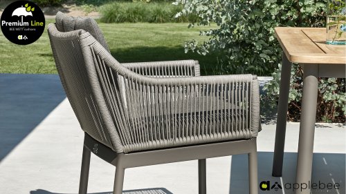 Der Mädchenname Bijou bedeutet sanft und freundlich. Das trifft auf jeden Fall auf die neue Perle in der Apple Bee-Kollektion zu. Das Seil des AppleBee Bijou hat das Aussehen einer Weidenzehe. Optisch natürlich, aber in der bekannten robusten Biculair®-Außenqualität, die Sie von Apple Bee gewohnt sind. Dieses Seil wird von einem taupefarbenen, pulverbeschichteten Rahmen mit geschwungenen Linien eingerahmt, wodurch das Gartenset Bijou seinen schicken, modernen Look erhält.