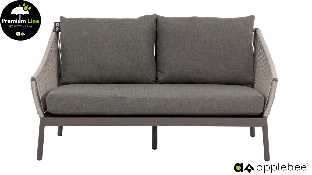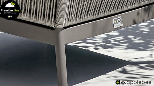 Die stromlinienförmige Bijou Lounge von Applebee zeichnet sich durch das zweilagige geflochtene Seil aus, durch das man hindurchsehen kann. Um den Aluminiumrahmen herum lässt das Drahtseil die Ecken offen, so dass die Farbe Taupe zum Vorschein kommt. Die feinen, geschwungenen Konturen dieses Möbelstücks sorgen für ein schlichtes, aber elegantes Aussehen. In Kombination mit dem harmonischen Zusammenspiel der Taupefarben und des Geflechts ist der luxuriöse Bijou eine wunderbare Ergänzung für den Garten. Natürlich ist auch dieses Lounge-Set mit unseren Bee Wett®-Kissen ausgestattet.