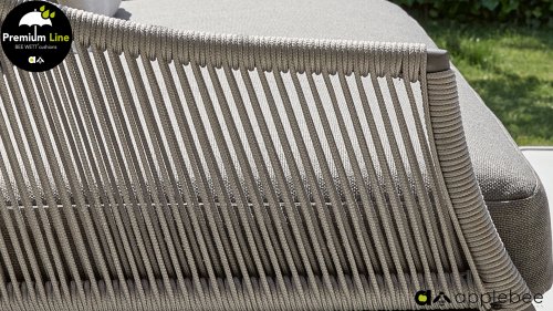 Die stromlinienförmige Bijou Lounge von Applebee zeichnet sich durch das zweilagige geflochtene Seil aus, durch das man hindurchsehen kann. Um den Aluminiumrahmen herum lässt das Drahtseil die Ecken offen, so dass die Farbe Taupe zum Vorschein kommt. Die feinen, geschwungenen Konturen dieses Möbelstücks sorgen für ein schlichtes, aber elegantes Aussehen. In Kombination mit dem harmonischen Zusammenspiel der Taupefarben und des Geflechts ist der luxuriöse Bijou eine wunderbare Ergänzung für den Garten. Natürlich ist auch dieses Lounge-Set mit unseren Bee Wett®-Kissen ausgestattet.