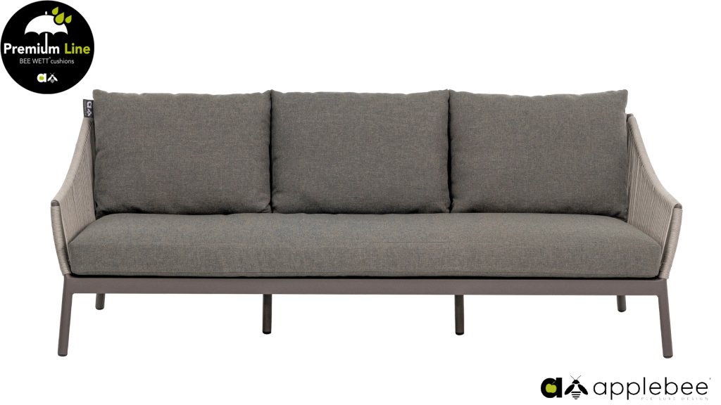 Die stromlinienförmige Bijou Lounge von Applebee zeichnet sich durch das zweilagige geflochtene Seil aus, durch das man hindurchsehen kann. Um den Aluminiumrahmen herum lässt das Drahtseil die Ecken offen, so dass die Farbe Taupe zum Vorschein kommt. Die feinen, geschwungenen Konturen dieses Möbelstücks sorgen für ein schlichtes, aber elegantes Aussehen. In Kombination mit dem harmonischen Zusammenspiel der Taupefarben und des Geflechts ist der luxuriöse Bijou eine wunderbare Ergänzung für den Garten. Natürlich ist auch dieses Lounge-Set mit unseren Bee Wett®-Kissen ausgestattet.