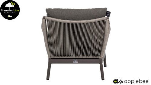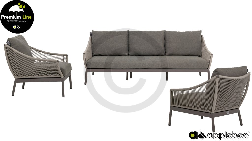 Die stromlinienförmige Bijou Lounge von Applebee zeichnet sich durch das zweilagige geflochtene Seil aus, durch das man hindurchsehen kann. Um den Aluminiumrahmen herum lässt das Drahtseil die Ecken offen, so dass die Farbe Taupe zum Vorschein kommt. Die feinen, geschwungenen Konturen dieses Möbelstücks sorgen für ein schlichtes, aber elegantes Aussehen. In Kombination mit dem harmonischen Zusammenspiel der Taupefarben und des Geflechts ist der luxuriöse Bijou eine wunderbare Ergänzung für den Garten. Natürlich ist auch dieses Lounge-Set mit unseren Bee Wett®-Kissen ausgestattet.
