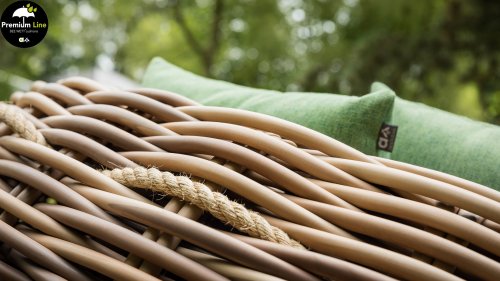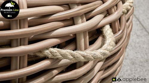 Der 20 mm dicke Flechtfaden wird von Hand und mit großem Aufwand fest um den Aluminiumrahmen geflochten. Apple Bee hat sich diese raffinierte Flechttechnik durch jahrelange Erfahrung und die Zusammenarbeit mit den erfahrensten Flechtexperten angeeignet. Der Designer will mit dem neuen Flechtfaden die Idee von geflochtenen Rattanstäben vermitteln. Das geflochtene Sisalseil verleiht dem Apple Bee Cocoon nicht nur seinen einzigartigen Charakter, sondern ist auch sehr praktisch, um das Möbelstück leicht zu bewegen. Der Lounge Cocoon ist buchstäblich der Evergreen von Apple Bee!