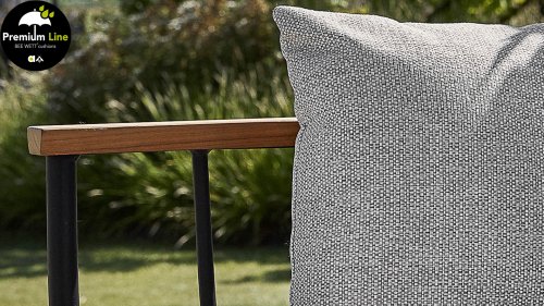 AppleBee Möbel werden hergestellt aus den besten Materialien. Das gilt ebenso auch für die Kissen und Polster. Bee Wett sind spezielle wetterfeste Kissen die natürlich draussen liegen bleiben können. Die abnehmbaren Hüllen werden aus den bestenmöglichen Stoffen hergestellt und sind alle waschbar. Der Stoff ist zusätzlich wasserabstoßend und garantiert UV-beständig. Anders als bei dem gewöhnlichen Schaum nimmt die einzigartige Bee Wett Füllung keine Feuchtigkeit mehr auf. Eine offenes Gewebe an der Unterseite der Kissen sorgt für eine perfekte Drainage. Der Vorteil, dass die Bee-Wett® Kissen und Polster unglaublich viel schneller trocknen als vergleichbare andere Kissen. Das Bee Wett-Kissen wird mit einem Olefin Stoff bezogen, der eine gute Beständigkeit gegen Verfaulen und Stockflecken aufweist, und darüber hinaus UV-beständig, weich, komfortabel und feuchtigkeitsabstoßend ist.