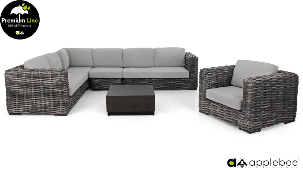 Die Kollektion Applebee Elements XL ist ein typisches Beispiel für zeitloses Design, das auf dem Kubismus basiert,die aktuelle XL-Variante mit robustem 18-mm-Biculair®-Geflecht veredelt, das Ihrem Garten ein schönes, luxuriöses Aussehen verleiht.