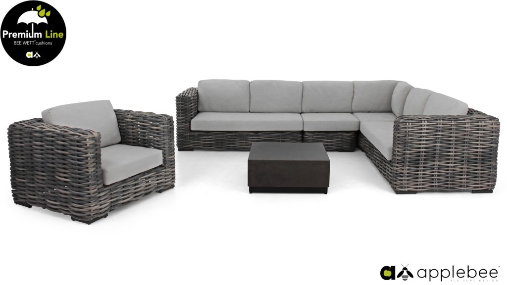 Die Kollektion Applebee Elements XL ist ein typisches Beispiel für zeitloses Design, das auf dem Kubismus basiert,die aktuelle XL-Variante mit robustem 18-mm-Biculair®-Geflecht veredelt, das Ihrem Garten ein schönes, luxuriöses Aussehen verleiht.