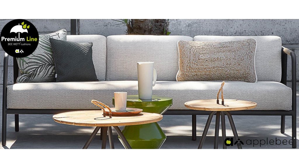 AppleBee Möbel werden hergestellt aus den besten Materialien. Das gilt ebenso auch für die Kissen und Polster. Bee Wett sind spezielle wetterfeste Kissen die natürlich draussen liegen bleiben können. Die abnehmbaren Hüllen werden aus den bestenmöglichen Stoffen hergestellt und sind alle waschbar. Der Stoff ist zusätzlich wasserabstoßend und garantiert UV-beständig. Anders als bei dem gewöhnlichen Schaum nimmt die einzigartige Bee Wett Füllung keine Feuchtigkeit mehr auf. Eine offenes Gewebe an der Unterseite der Kissen sorgt für eine perfekte Drainage. Der Vorteil, dass die Bee-Wett® Kissen und Polster unglaublich viel schneller trocknen als vergleichbare andere Kissen. Das Bee Wett-Kissen wird mit einem Olefin Stoff bezogen, der eine gute Beständigkeit gegen Verfaulen und Stockflecken aufweist, und darüber hinaus UV-beständig, weich, komfortabel und feuchtigkeitsabstoßend ist.
