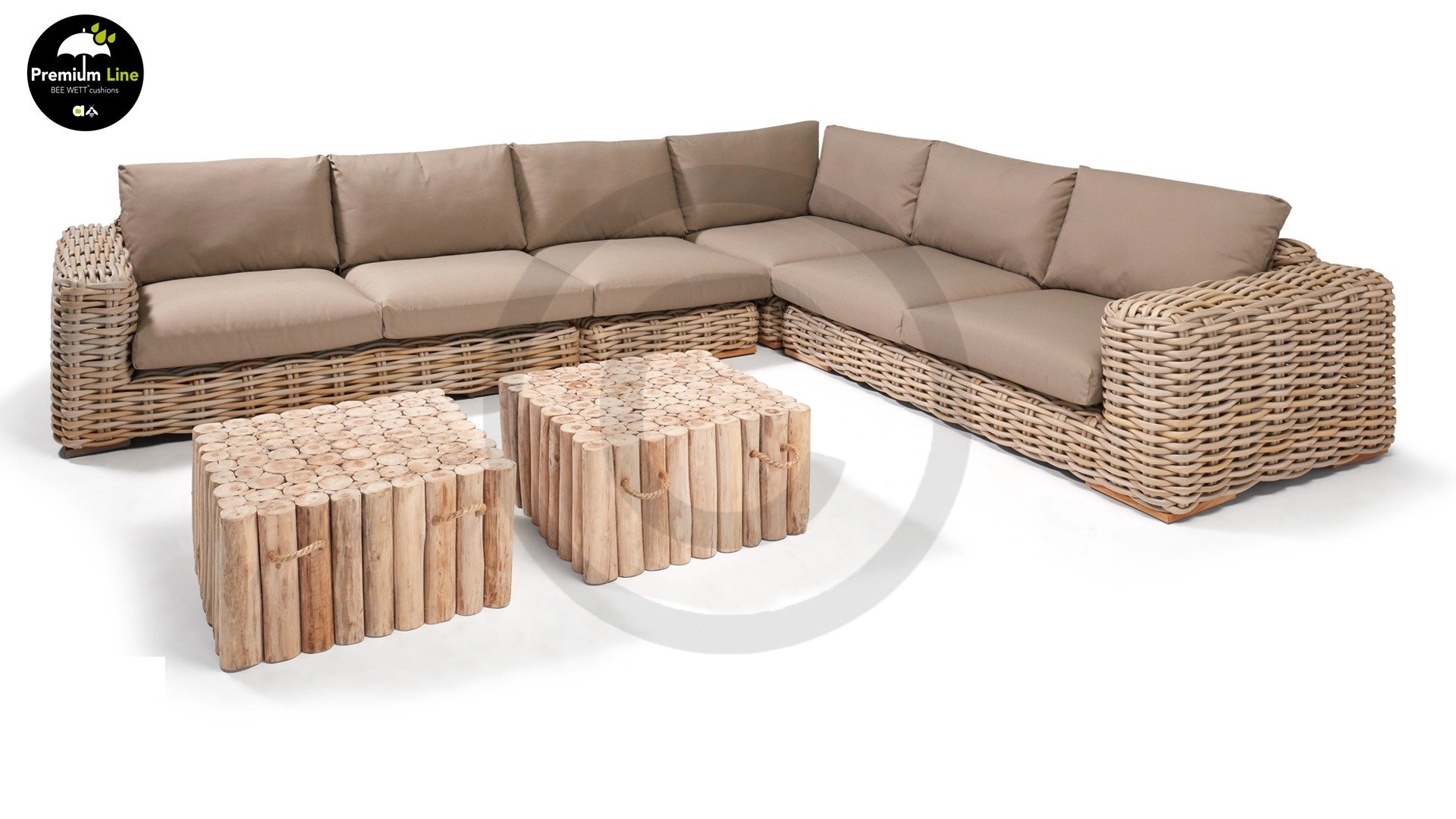 Alles ist großartig und überzeugend in diesem FFF Lounge-Set von Applebee; der Sitz ist nicht weniger als einen Meter tief und der Flechtfaden 20 mm dick. Die extra dicken Kissen sind mit unserer Bee Wett®-Technologie ausgestattet, die dafür sorgt, dass die Kissen nach einer starken Dusche schnell trocknen.