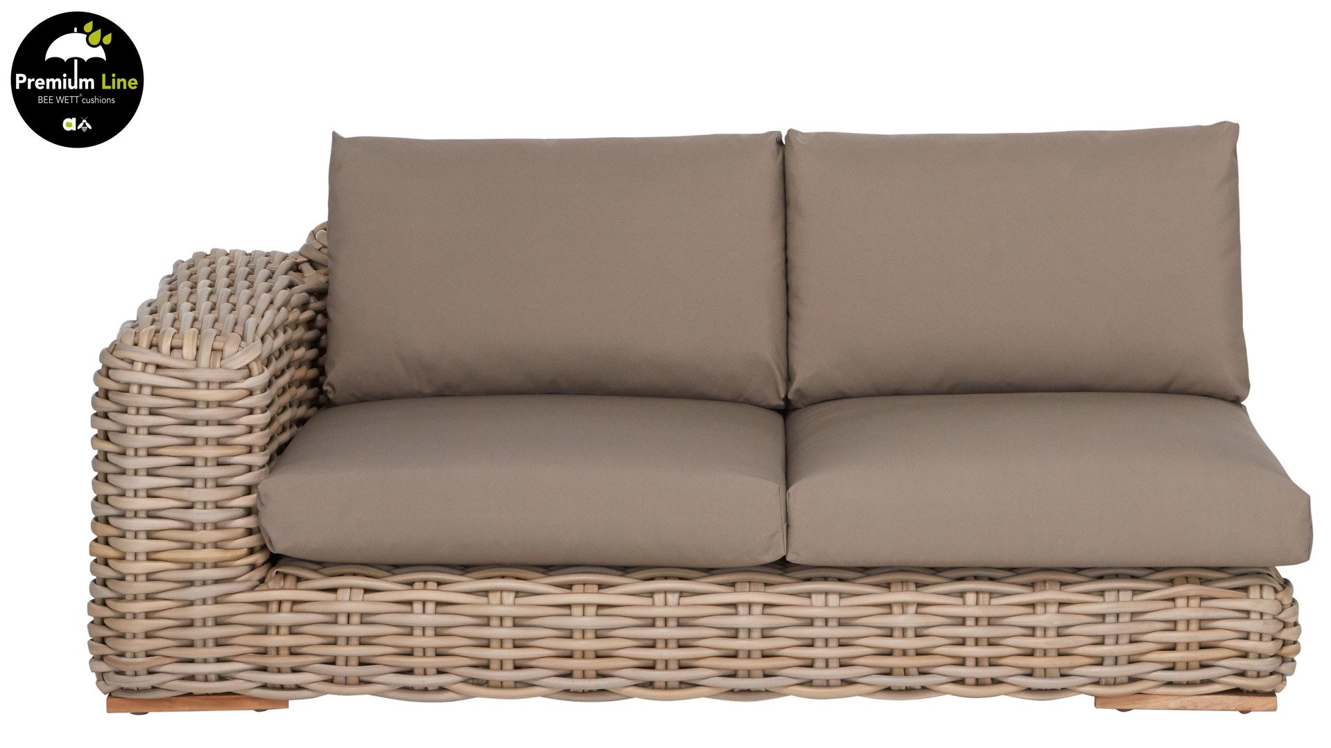 Alles ist großartig und überzeugend in diesem FFF Lounge-Set von Applebee; der Sitz ist nicht weniger als einen Meter tief und der Flechtfaden 20 mm dick. Die extra dicken Kissen sind mit unserer Bee Wett®-Technologie ausgestattet, die dafür sorgt, dass die Kissen nach einer starken Dusche schnell trocknen.