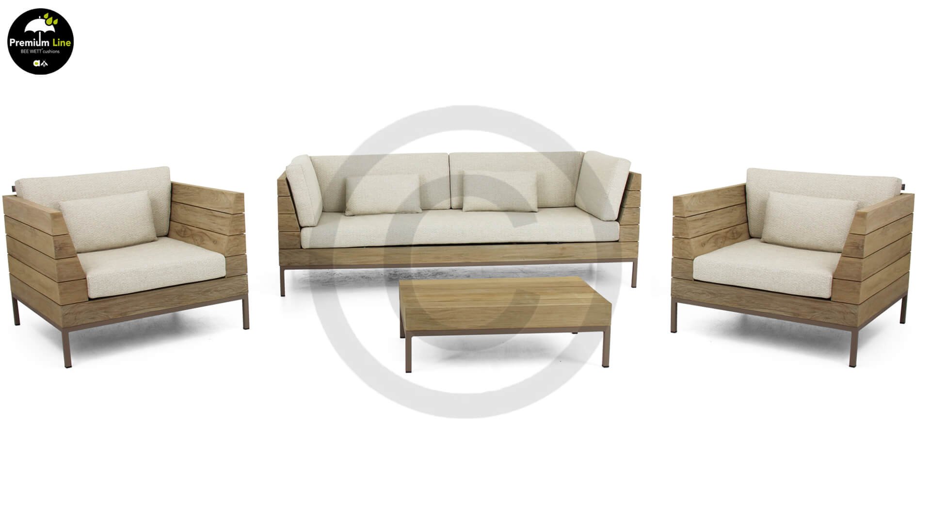 Das Applebee Long Island Lounge Set ist modular aufgebaut. Geeignet für große und kleine Aufstellungen. Das Teakholz ist mit einer küstennahen Farbbeschichtung versehen. Die klaren Linien sind charakteristisch für das Erscheinungsbild der Möbel. Der grob gewebte Stoff verleiht dem Set ein luxuriöses Ambiente.
