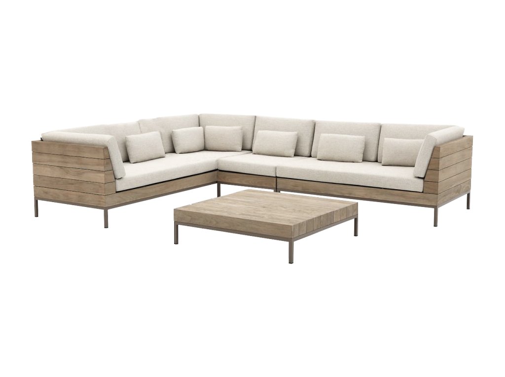 Das Applebee Long Island Lounge Set ist modular aufgebaut. Geeignet für große und kleine Aufstellungen. Das Teakholz ist mit einer küstennahen Farbbeschichtung versehen. Die klaren Linien sind charakteristisch für das Erscheinungsbild der Möbel. Der grob gewebte Stoff verleiht dem Set ein luxuriöses Ambiente.