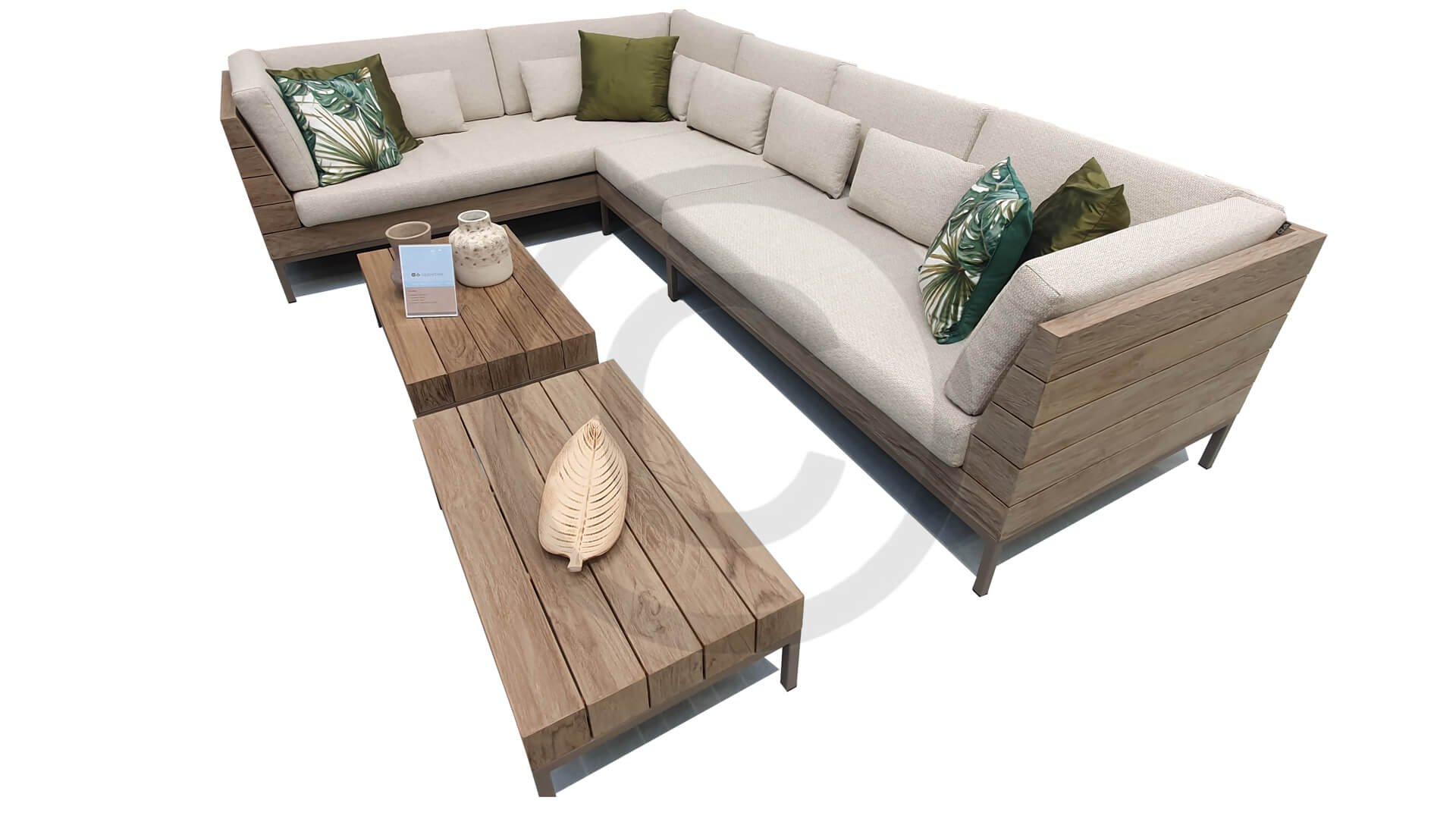 Das Applebee Long Island Lounge Set ist modular aufgebaut. Geeignet für große und kleine Aufstellungen. Das Teakholz ist mit einer küstennahen Farbbeschichtung versehen. Die klaren Linien sind charakteristisch für das Erscheinungsbild der Möbel. Der grob gewebte Stoff verleiht dem Set ein luxuriöses Ambiente.