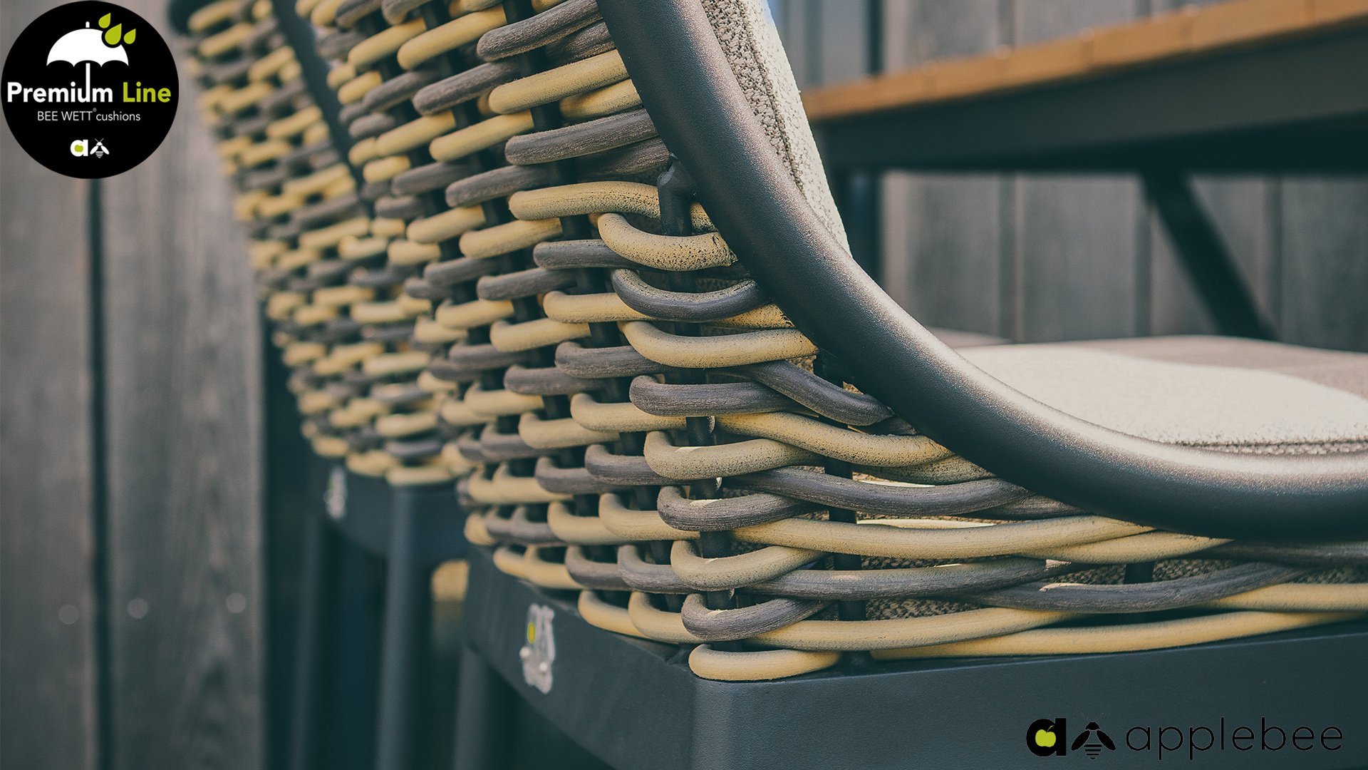 AppleBee Bee Wett sind spezielle wetterfeste Kissen die natürlich draußen liegen bleiben können. Die abnehmbaren Hüllen werden aus den besten möglichen Stoffen hergestellt und sind alle waschbar auf 30°C. Der Stoff ist zusätzlich wasserabstoßend und garantiert UV-beständig. Eine offenes Gewebe an der Unterseite der Kissen sorgt für eine perfekte Drainage. Der Vorteil, dass die Bee Wett Kissen und Polster unglaublich viel schneller trocknen als vergleichbare andere Kissen. Das Stoff hat eine gute Beständigkeit gegen Verfaulen und Stockflecken und darüber hinaus UV-beständig, weich, komfortabel und feuchtigkeitsabstoßend ist. Die Polster sind ausziehbar und waschbar.