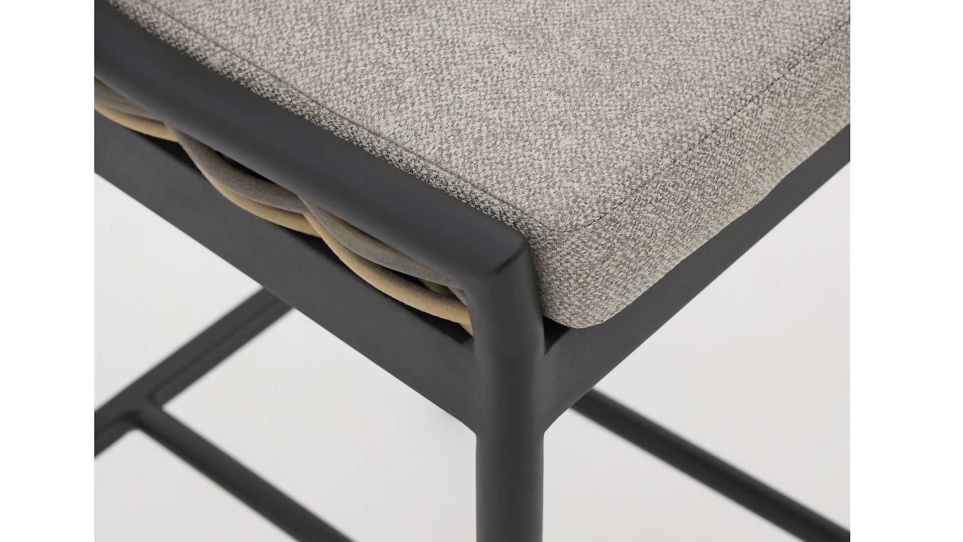 Eine ähnliche Serie ist die AppleBee Bijou Bar Serie. Ausgestattet mit silbergrauem Seil und pulverbeschichtetem taupefarbenem Fuß.