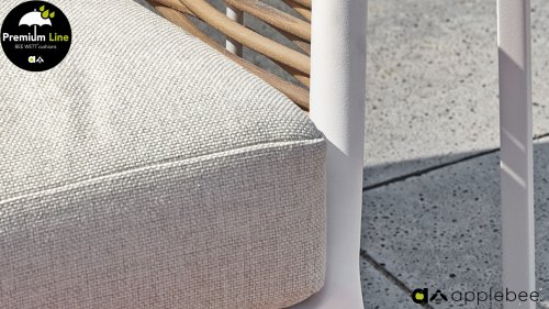 AppleBee Bee Wett sind spezielle wetterfeste Kissen die natürlich draußen liegen bleiben können. Die abnehmbaren Hüllen werden aus den besten möglichen Stoffen hergestellt und sind alle waschbar auf 30°C. Der Stoff ist zusätzlich wasserabstoßend und garantiert UV-beständig. Eine offenes Gewebe an der Unterseite der Kissen sorgt für eine perfekte Drainage. Der Vorteil, dass die Bee Wett Kissen und Polster unglaublich viel schneller trocknen als vergleichbare andere Kissen. Das Stoff hat eine gute Beständigkeit gegen Verfaulen und Stockflecken und darüber hinaus UV-beständig, weich, komfortabel und feuchtigkeitsabstoßend ist. Die Polster sind ausziehbar und waschbar.