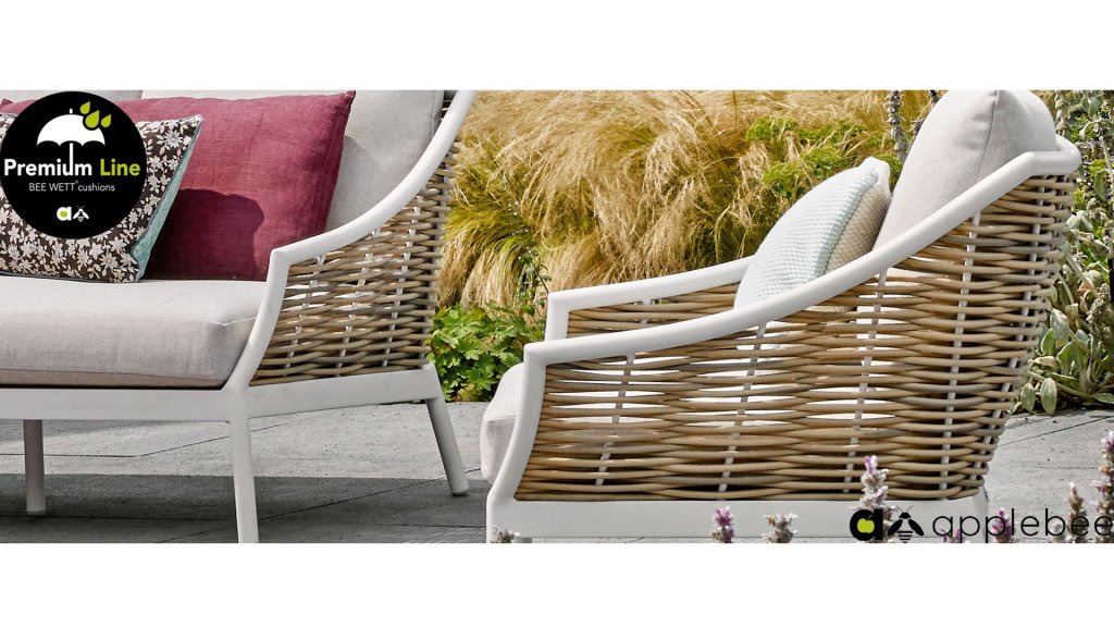 AppleBee Möbel werden hergestellt aus den besten Materialien. Das gilt ebenso auch für die Kissen und Polster. Bee Wett sind spezielle wetterfeste Kissen die natürlich draussen liegen bleiben können. Die abnehmbaren Hüllen werden aus den bestenmöglichen Stoffen hergestellt und sind alle waschbar. Der Stoff ist zusätzlich wasserabstoßend und garantiert UV-beständig. Anders als bei dem gewöhnlichen Schaum nimmt die einzigartige Bee Wett Füllung keine Feuchtigkeit mehr auf. Eine offenes Gewebe an der Unterseite der Kissen sorgt für eine perfekte Drainage. Der Vorteil, dass die Bee Wett Kissen und Polster unglaublich viel schneller trocknen als vergleichbare andere Kissen. Das Bee Wett-Kissen wird mit einem Olefin Stoff bezogen, der eine gute Beständigkeit gegen Verfaulen und Stockflecken aufweist, und darüber hinaus UV-beständig, weich, komfortabel und feuchtigkeitsabstoßend ist.
