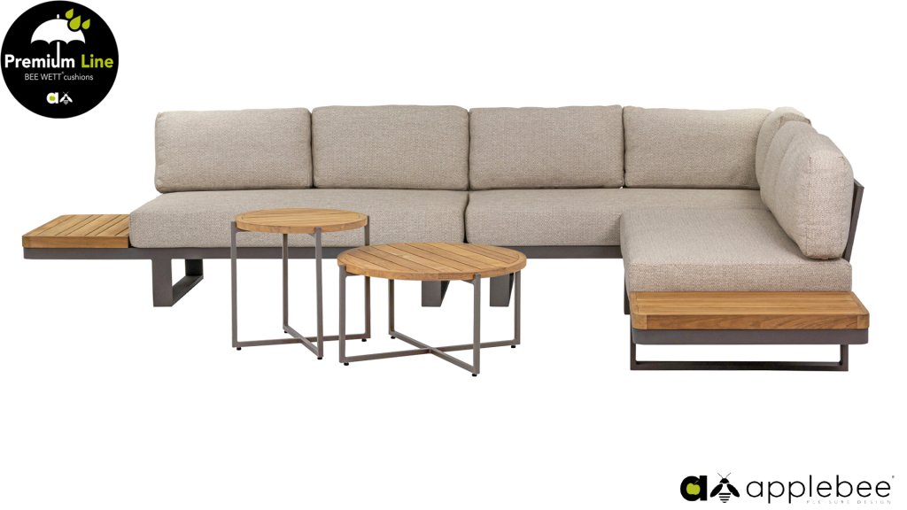 Die brandneue Applebee Mura Lounge ist eine wahre Augenweide. Dieses Loungeset sieht nicht nur originell aus, es ist auch eine funktionelle Ergänzung für Ihren Garten. Die Mura Lounge lässt sich dank der verschiedenen Module ganz nach Ihrem Geschmack einrichten. Beide Sofas sind Zweisitzer, darunter ein Eckmodul und ein Sofa mit einem Teaktisch an der Seite.