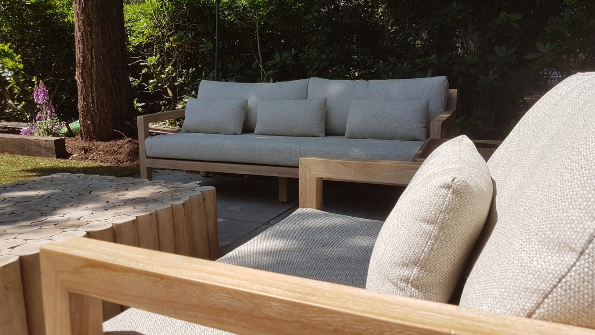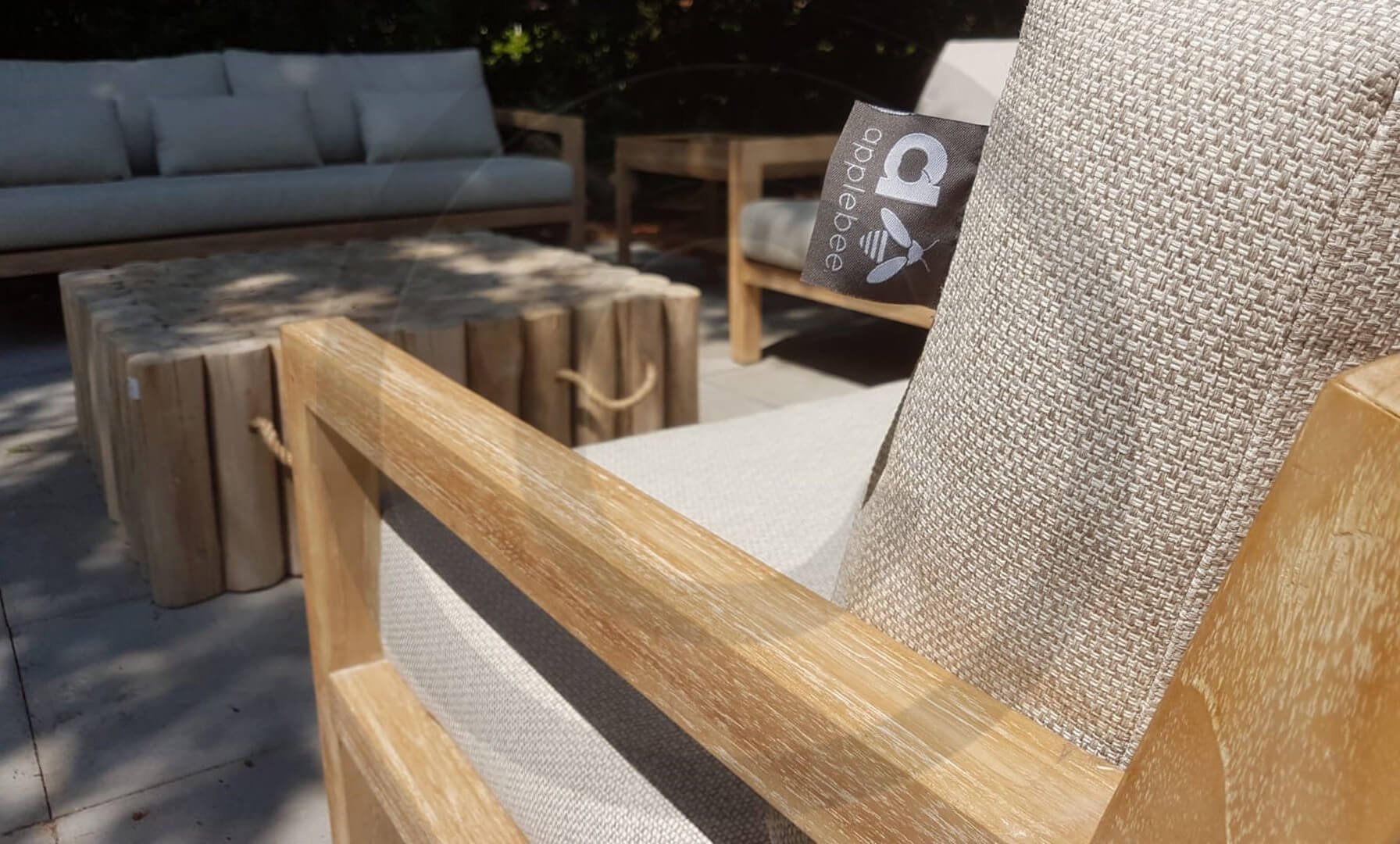 AppleBee Olive Loungegruppe: Das Weißtünchen (White Washing) von Holz ist aus einem alten Phänomen hervorgegangen,bei dem Holz mit Kalk bearbeitet wurde, und zwar aufgrund der desinfizierenden Wirkung.Während des Tünch-Vorgangs dringt der Kalk bis tief in die Fasern des Holzes ein, was für einen schönen, gebleichten Effekt sorgt. Sind Sie also auf der Suche nach etwas komplett Anderem? Schauen Sie sich dann auf jeden Fall das Applebee Olive-Set mit der originellen, weißgetünchten Farbe auf dem robusten Teakholz an. Die Kombination aus gebleichtem Teakholz und den dazu passenden, beigefarbenen Bee Wett Kissen verleiht dem Olive eine besonders schicke Ausstrahlung.