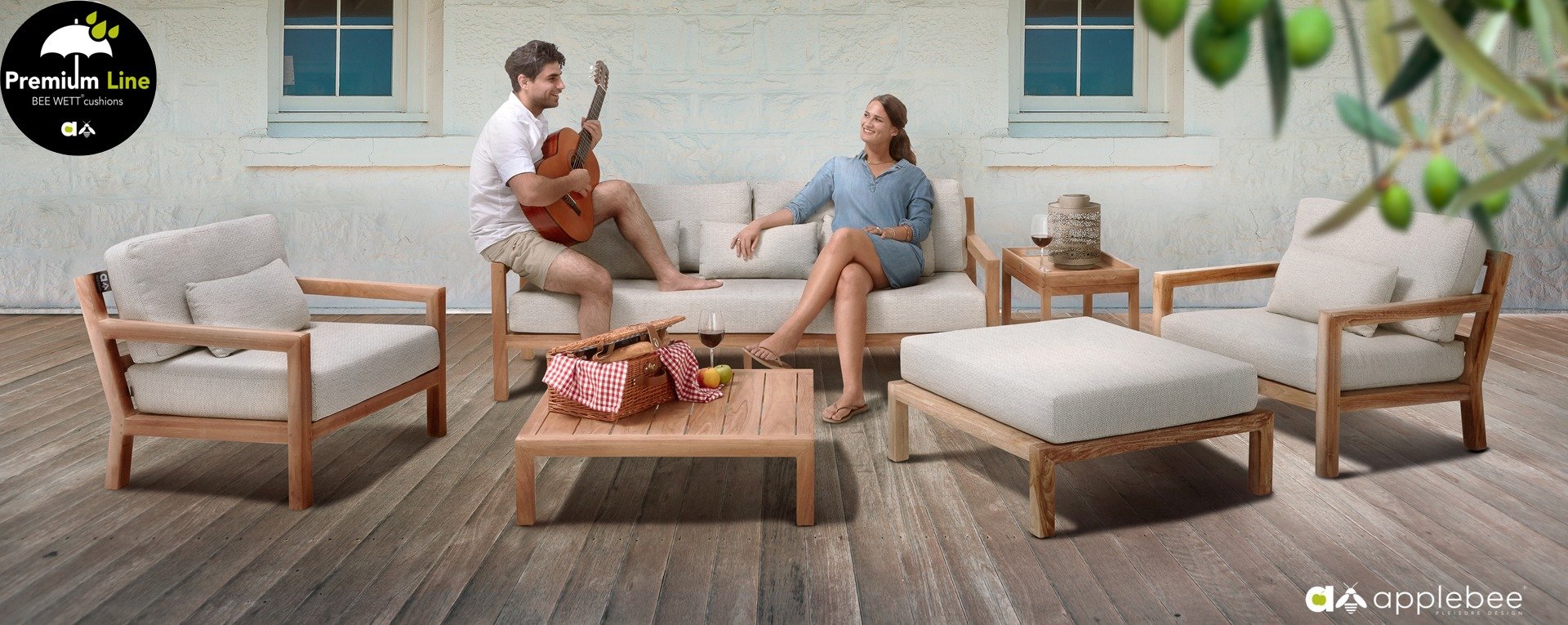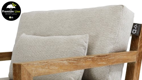 Olive ist komplett aus massivem Teakholz hergestellt. Wie bei allen anderen Kollektionen aus Teakholz von Apple Bee ist auch Olive vollständig aus SVLK-zertifiziertem Holz gefertigt. Der stattliche Loungestuhl hat eine extra tiefe Sitzfläche, was für eine Menge an zusätzlichem Komfort sorgt. Olive kennzeichnet sich durch das robuste Gestell aus Teakholz mit geradlinigen und modernen Formen. Die getünchten Farbtöne sind auch im dazu passenden Loungetisch vorhanden, wodurch das ganze Set eine weiche, jedoch warme Ausstrahlung erhält.