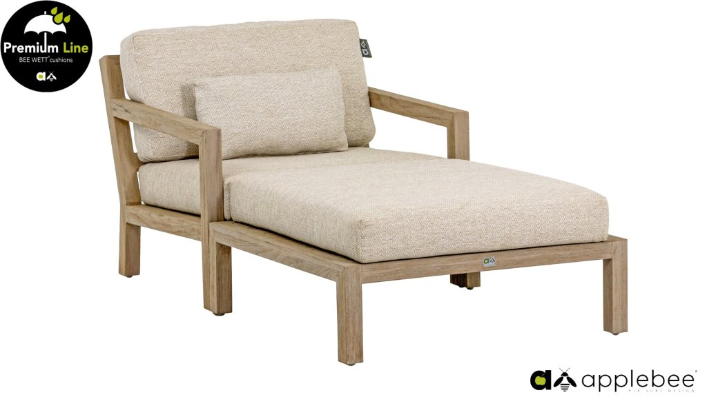 Die klaren, kantigen Linien dieses Applebee Olive Lounge-Sets sind schräg. Schieben Sie die Ottomane in den Loungesessel und genießen Sie den Komfort, den dieses Teakholz-Set zu bieten hat. Auf unseren weichen und wetterfesten Bee Wett®-Kissen werden Sie sich garantiert wohlfühlen!