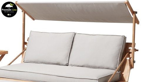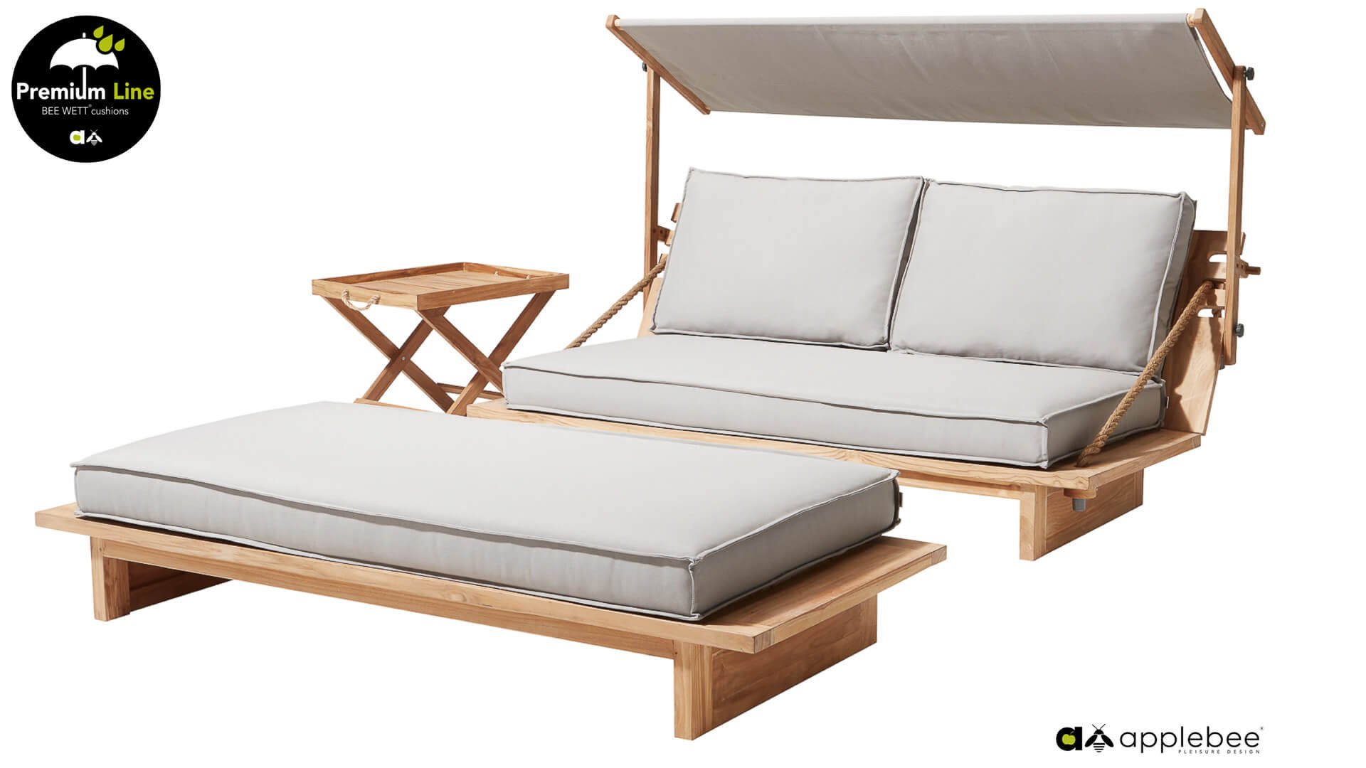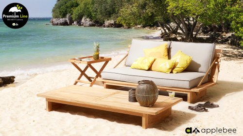 Voller Stolz präsentiert Apple Bee sein neuestes Meisterwerk mit dem Namen Robinson, das vollständig aus Natural Smooth Teak hergestellt ist. Fühlen Sie sich wie auf einer verlassenen Insel und träumen Sie weg auf Ihrem Robinson Daybed, genießen Sie einen Drink im Loungeset oder lassen Sie Ihre Füße auf dem Footstool ruhen. Im Nu wandeln Sie den Love Seat mit Kaffeetisch und Footstool in ein luxuriöses Daybed um. Schützen Sie Ihre Augen vor der Sonne, indem Sie auf dem Robinson einen Sonnenschirm montieren. Stellen Sie die Rückenlehne mithilfe eines schönen Schließsystems aus starkem Seil und nach eigenem Ermessen in 1 der 3 verschiedenen Positionen.