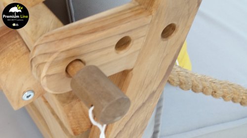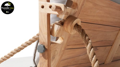Neben seinen schicken Looks ist der Robinson dank seiner großen Funktionalität für jede Lage geeignet. Genießen Sie am Strand, Schwimmbad oder entspannen Sie sich mit einem guten Buch in Ihrem eigenen Garten. Robinson wird sich Ihrem Geschmack anpassen. Dank des verstellbaren Seils, das an der Rückenlehne montiert ist, kann Robinson in jede gewünschte Position gestellt werden. Indem Sie das Gleitstück in einer der drei Position sichern, bestimmen Sie selbst, ob Sie gerade oder entspannt nach hinten gelehnt sitzen möchten. Dank eines ausfahrbaren Gegengewichts bleibt der Robinson stabil in seiner Position stehen. Diese zusätzliche, hölzerne Befestigung sorgt also dafür, dass das Möbel nicht umkippen kann. Das hölzerne Gegengewicht wurde sorgfältig in das Gestell des Robinson eingearbeitet, sodass er seine coole Ausstrahlung behält.