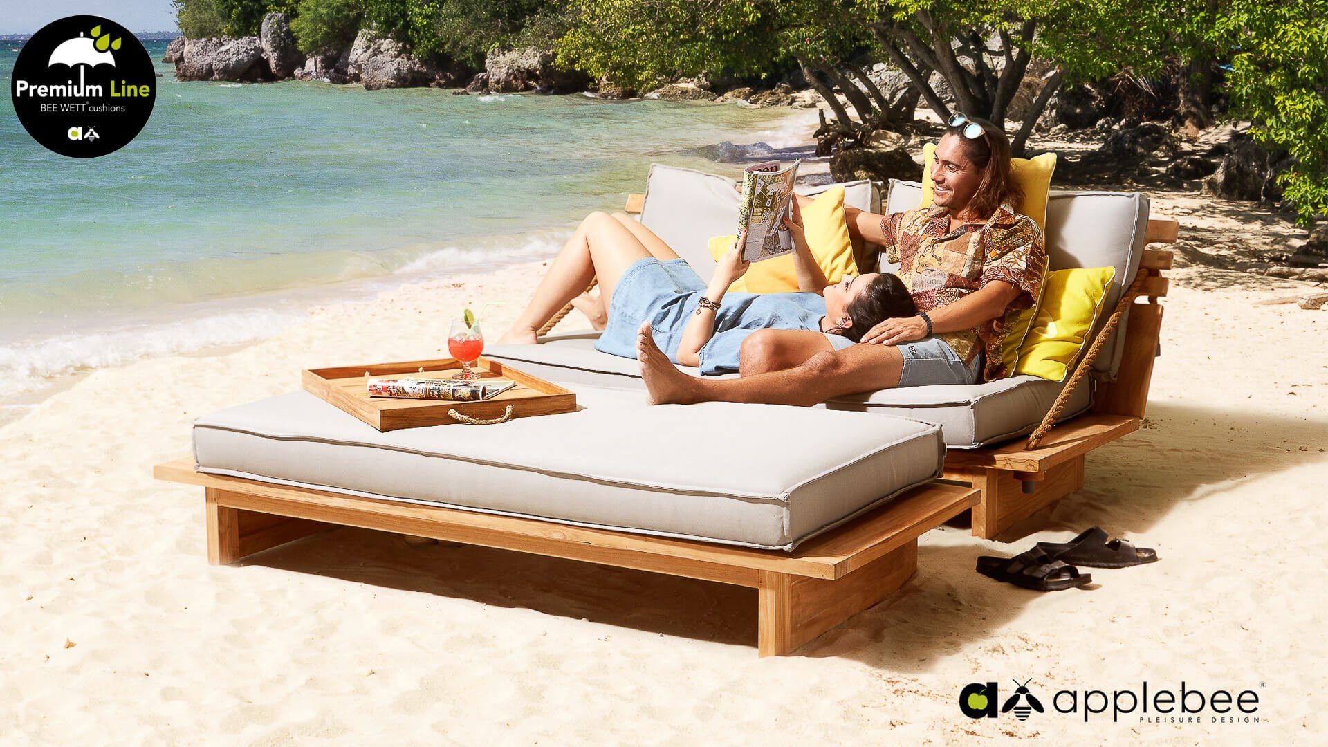 AppleBee BEE WETT sind spezielle wetterfeste Kissen die natürlich draussen liegen bleiben können. Die abnehmbaren Hüllen werden aus den bestenmöglichen Stoffen hergestellt und sind alle waschbar auf 30°. Der Stoff ist zusätzlich wasserabstoßend und garantiert UV-beständig. Eine offenes Gewebe an der Unterseite der Kissen sorgt für eine perfekte Drainage. Der Vorteil, dass die BEE WETT Kissen und Polster unglaublich viel schneller trocknen als vergleichbare andere Kissen. Das Stoff hat eine gute Beständigkeit gegen Verfaulen und Stockflecken und darüber hinaus UV-beständig, weich, komfortabel und feuchtigkeitsabstoßend ist. Die Polster sind ausziehbar und waschbar.