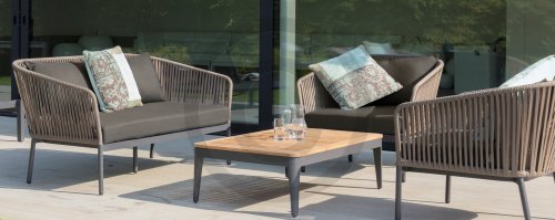 Haltbares Aluminium, natürliches Teak ,Textilene Faser und ein schönes Design machen das Caslteline Clavo Lounge Set zu einem echten Blickfang. Durch den Einsatz von hochwertigen Materialien ist diese Gartenmöbel Sitzgruppe pflegeleicht und kann das ganze Jahr über draußen.