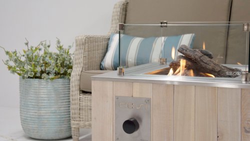 Der Cosicube ist eine wunderbare Ergänzung zu Ihrem Lounge-Set. Der Tisch ist mit einem eingebauten Gaskamin versehen. Aber keine Sorge, Sie werden von Rauch oder Funken nicht belästigt. Der Cosi Cube ist zu hundert Prozent sicher. Der Tisch ist nämlich mit einem Edelstahlbrenner ausgestattet, der durch die mitgelieferten Holzscheite und Lavasteine verdeckt wird. Dadurch ähnelt der Cosi Cube einem mit echtem Holz befeuerten Kamin und sorgt - buchstäblich - für die warme, gemütliche Atmosphäre, die Sie sich wünschen. Und aufgrund der Edelstahltischplatte ist es ein echter Tisch, der ferner aus Douglasienholz mit Grauschleier hergestellt ist. Das Anzünden ist ganz einfach, der Tisch ist mit einer elektronischen Zündung ausgestattet. Der Cosi Cube wird über eine Gasflasche betreiben, die aber auch nicht sichtbar ist. So bleibt der Cosi Cube stilvoll.