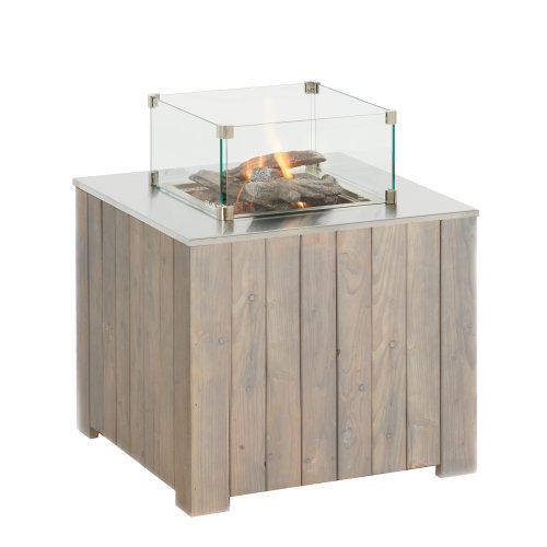 Der Cosi Cube 70 ist aus edlem Douglasienholz mit Grauschleier hergestellt. Dies verleiht dem Tisch ein stimmungsvolles und modernes Aussehen. Der Feuertisch ist oben mit einer modernen Edelstahltischplatte versehen, die sich ausgezeichnet zum Abstellen Ihrer Snacks oder Getränke eignet. Nach dem Gebrauch decken Sie den Tisch, zum Schutz vor Wettereinflüssen, mit der kostenlos mitgelieferten Schutzhülle ab. Das Douglasienholz wird im Laufe der Zeit noch grauer werden. Das ist für diese Holzart typisch.