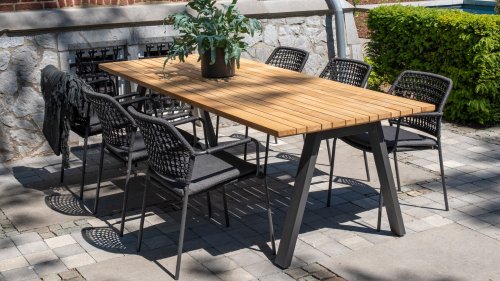 Auf der Suche nach einem schönen Gartenset? Genießen Sie nach einem anstrengenden Arbeitstag ein leckeres Essen im Freien oder genießen Sie einen langen Abend mit Familie oder Freunden. Mit einem Dining-Set ist alles möglich. Die Materialien unserer Gartensets sind so konzipiert, dass sie den Elementen standhalten. Entscheiden Sie sich für warmes Teakholz, schlichtes Aluminium, anmutiges Rope von 4 Seasons Outdoor, zeitloses Geflecht oder eine Materialkombination wie Applebee? Neu und Planet Proof sind die Modelle aus recyceltem Kunststoff der dänischen Marke HOUE! Kombinieren Sie nach Herzenslust mit dem Tisch Ihrer Wahl. Wenn Sie eine andere Kombination als abgebildet wünschen, können Sie die Schaltfläche Eigene erstellen verwenden. Zögern Sie nicht, uns bezüglich der Möglichkeiten zu kontaktieren! !. Wir werden unser Bestes tun, um Sie bestmöglich zu beraten.