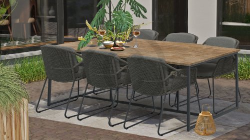 Auf der Suche nach einem schönen Gartenset? Genießen Sie nach einem anstrengenden Arbeitstag ein leckeres Essen im Freien oder genießen Sie einen langen Abend mit Familie oder Freunden. Mit einem Dining-Set ist alles möglich. Die Materialien unserer Gartensets sind so konzipiert, dass sie den Elementen standhalten. Entscheiden Sie sich für warmes Teakholz, schlichtes Aluminium, anmutiges Rope von 4 Seasons Outdoor, zeitloses Geflecht oder eine Materialkombination wie Applebee? Neu und Planet Proof sind die Modelle aus recyceltem Kunststoff der dänischen Marke HOUE! Kombinieren Sie nach Herzenslust mit dem Tisch Ihrer Wahl. Wenn Sie eine andere Kombination als abgebildet wünschen, können Sie die Schaltfläche Eigene erstellen verwenden. Zögern Sie nicht, uns bezüglich der Möglichkeiten zu kontaktieren! !. Wir werden unser Bestes tun, um Sie bestmöglich zu beraten.