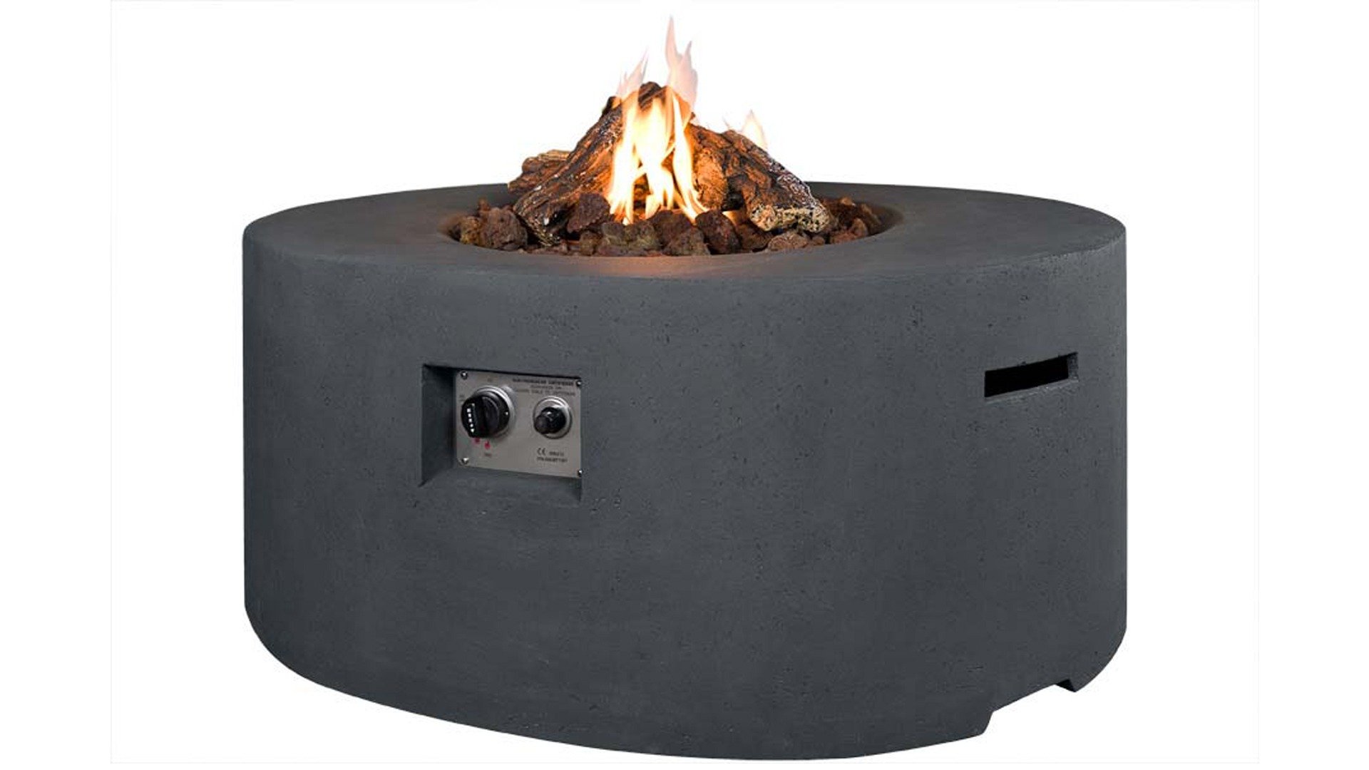 Dieser Happy Cocooning Feuertisch besteht aus Verbundwerkstoff. Es verfügt über ein kompaktes Bedienfeld zum Einstellen der Flammenhöhe. OP=OP