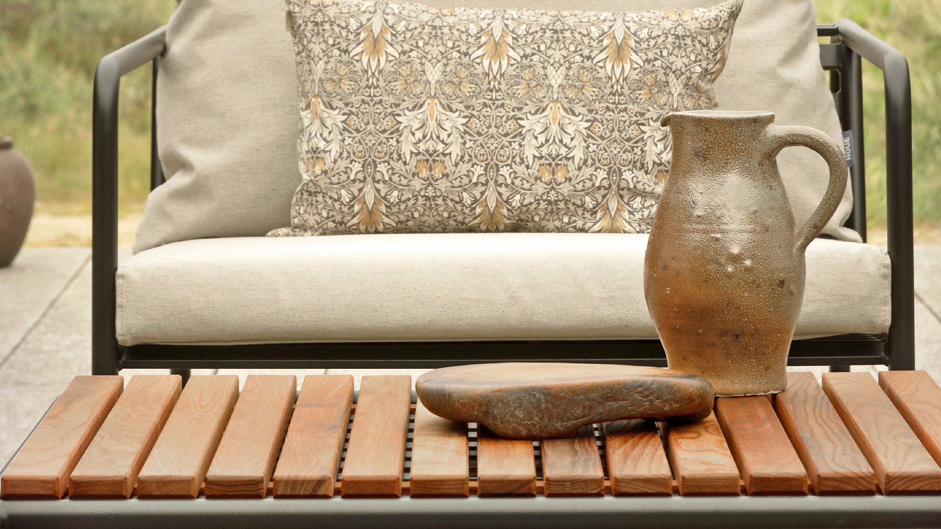 Die HOUE AVON-Kollektion wurde aus dem Wunsch heraus entworfen, etwas mit einem sehr leichten Erscheinungsbild und einem niedrigen, schlanken Profil zu schaffen, während ein hohes Maß an Komfort beibehalten wird. Der wartungsfreie Rahmen und die Konstruktion der großen weichen Rückenkissen ist genau das: die Einfachheit der Struktur, bei der niedrige Linien dafür sorgen, dass das Design immer stolz aussieht, ob mit oder ohne Kissen - Sommer oder Winter. Die Griffe der Kissen sind ein Statement für die Funktion des Produkts und machen sie bei Bedarf leicht zu greifen und zu verstauen.