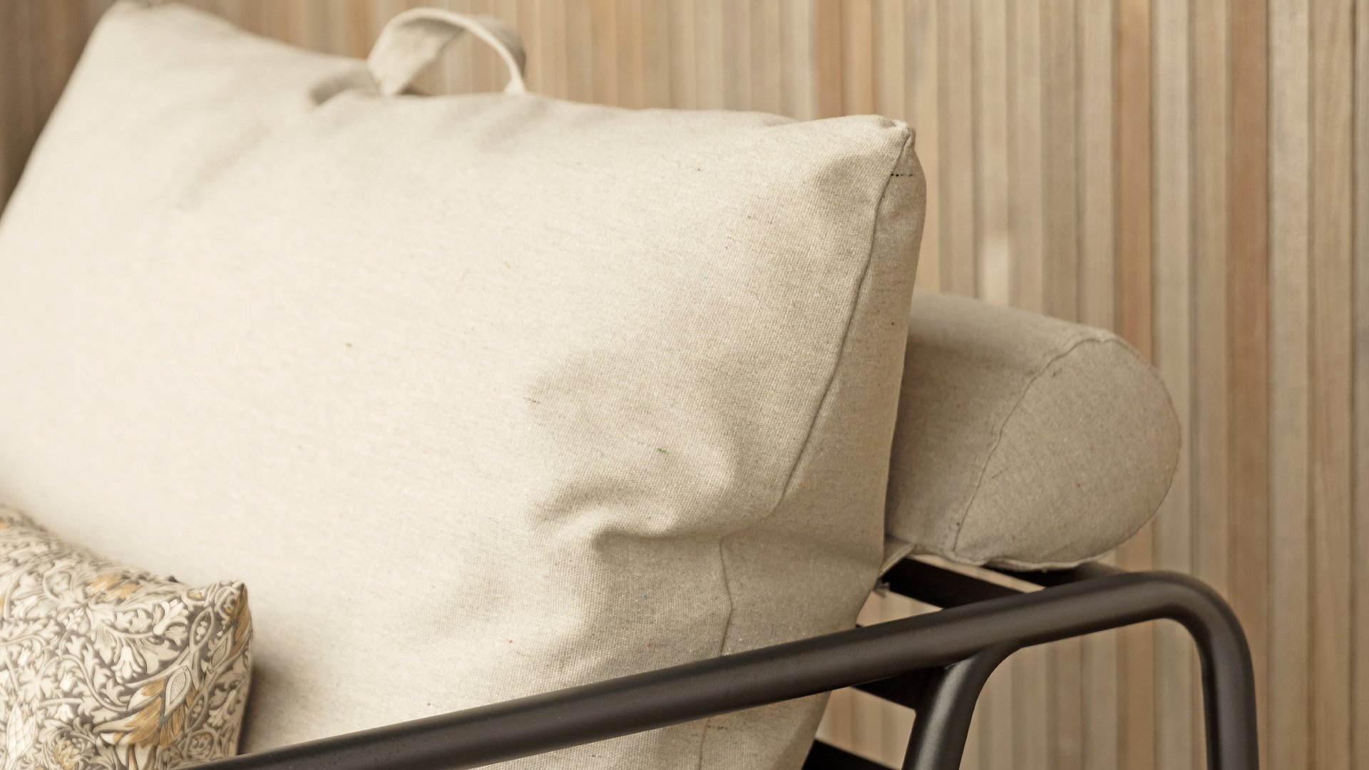 Die HOUE AVON-Kollektion wurde aus dem Wunsch heraus entworfen, etwas mit einem sehr leichten Erscheinungsbild und einem niedrigen, schlanken Profil zu schaffen, während ein hohes Maß an Komfort beibehalten wird. Der wartungsfreie Rahmen und die Konstruktion der großen weichen Rückenkissen ist genau das: die Einfachheit der Struktur, bei der niedrige Linien dafür sorgen, dass das Design immer stolz aussieht, ob mit oder ohne Kissen - Sommer oder Winter. Die Griffe der Kissen sind ein Statement für die Funktion des Produkts und machen sie bei Bedarf leicht zu greifen und zu verstauen.