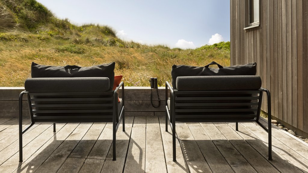 Die HOUE AVON-Kollektion wurde aus dem Wunsch heraus entworfen, etwas mit einem sehr leichten Erscheinungsbild und einem niedrigen, schlanken Profil zu schaffen, während ein hohes Maß an Komfort beibehalten wird. Der wartungsfreie Rahmen und die Konstruktion der großen weichen Rückenkissen ist genau das: die Einfachheit der Struktur, bei der niedrige Linien dafür sorgen, dass das Design immer stolz aussieht, ob mit oder ohne Kissen - Sommer oder Winter. Die Griffe der Kissen sind ein Statement für die Funktion des Produkts und machen sie bei Bedarf leicht zu greifen und zu verstauen.