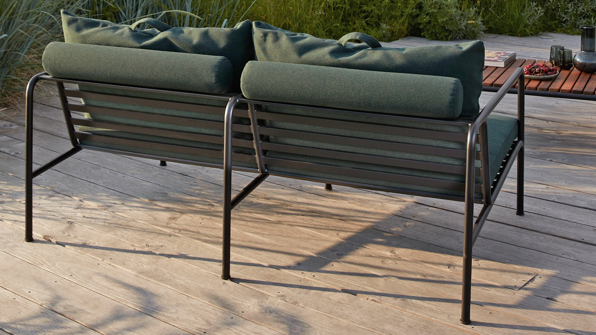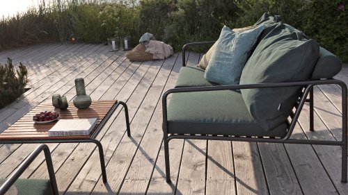 Die HOUE AVON-Kollektion wurde aus dem Wunsch heraus entworfen, etwas mit einem sehr leichten Erscheinungsbild und einem niedrigen, schlanken Profil zu schaffen, während ein hohes Maß an Komfort beibehalten wird. Der wartungsfreie Rahmen und die Konstruktion der großen weichen Rückenkissen ist genau das: die Einfachheit der Struktur, bei der niedrige Linien dafür sorgen, dass das Design immer stolz aussieht, ob mit oder ohne Kissen - Sommer oder Winter. Die Griffe der Kissen sind ein Statement für die Funktion des Produkts und machen sie bei Bedarf leicht zu greifen und zu verstauen.