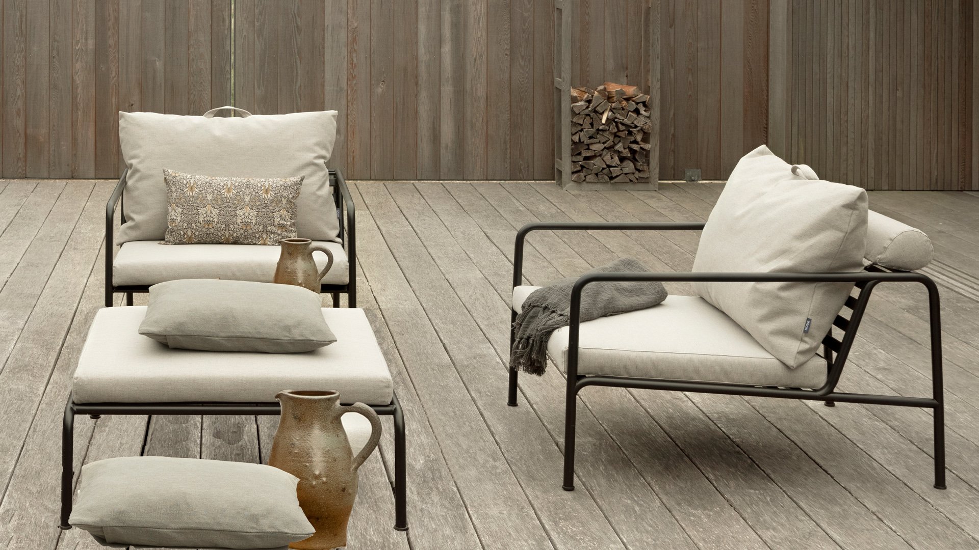 Die HOUE AVON-Kollektion wurde aus dem Wunsch heraus entworfen, etwas mit einem sehr leichten Erscheinungsbild und einem niedrigen, schlanken Profil zu schaffen, während ein hohes Maß an Komfort beibehalten wird. Der wartungsfreie Rahmen und die Konstruktion der großen weichen Rückenkissen ist genau das: die Einfachheit der Struktur, bei der niedrige Linien dafür sorgen, dass das Design immer stolz aussieht, ob mit oder ohne Kissen - Sommer oder Winter. Die Griffe der Kissen sind ein Statement für die Funktion des Produkts und machen sie bei Bedarf leicht zu greifen und zu verstauen.
