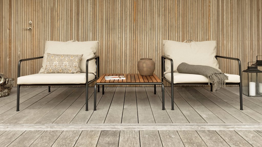Die HOUE AVON-Kollektion wurde aus dem Wunsch heraus entworfen, etwas mit einem sehr leichten Erscheinungsbild und einem niedrigen, schlanken Profil zu schaffen, während ein hohes Maß an Komfort beibehalten wird. Der wartungsfreie Rahmen und die Konstruktion der großen weichen Rückenkissen ist genau das: die Einfachheit der Struktur, bei der niedrige Linien dafür sorgen, dass das Design immer stolz aussieht, ob mit oder ohne Kissen - Sommer oder Winter. Die Griffe der Kissen sind ein Statement für die Funktion des Produkts und machen sie bei Bedarf leicht zu greifen und zu verstauen.