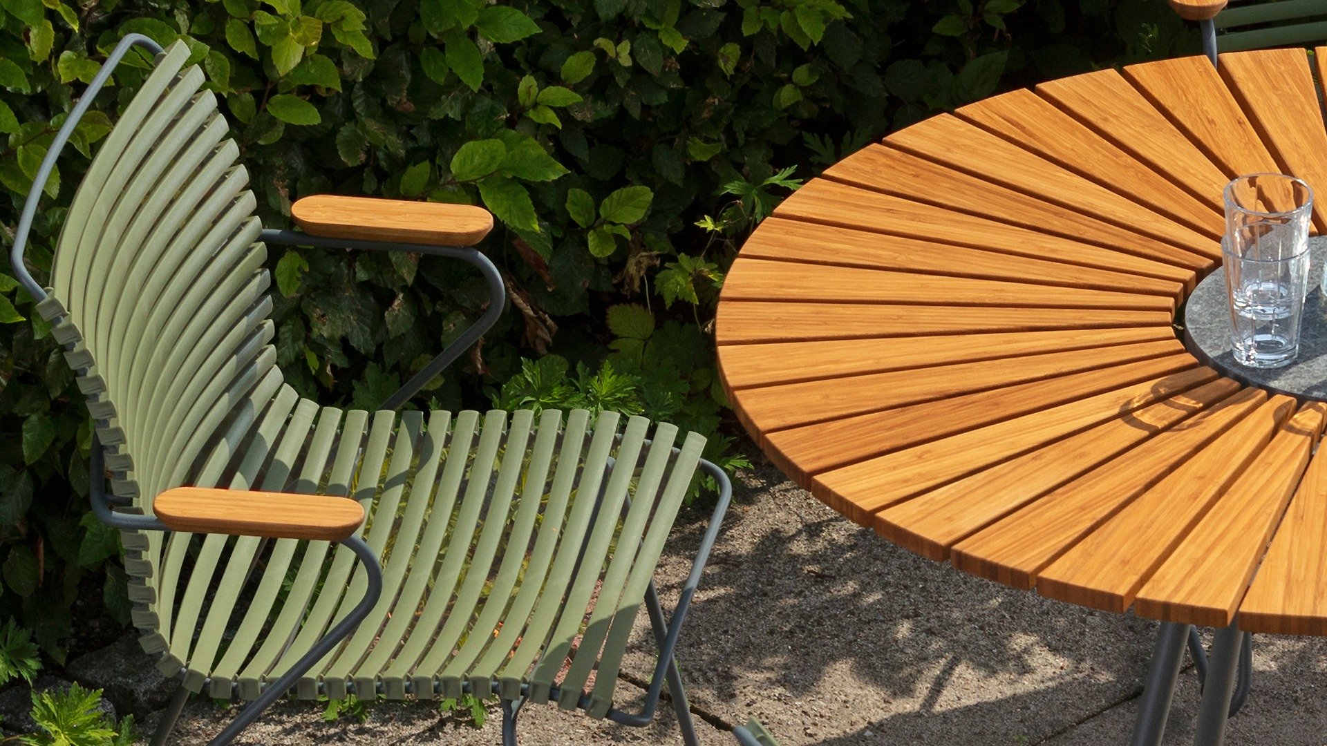 Der Houe Circle ist ein runder Gartentisch mit einer schönen Platte aus gemischtem Bambus. Den Kreis gibt es in 2 Größen, nämlich 150cm und 110cm. Das Schöne an diesem runden Tisch ist, dass er viel Platz bietet. In der Mitte des Kreistisches befindet sich ein zusammengesetzter Stein. Dies ist nützlich, wenn Sie Ihre heißen Pfannen usw. Das skandinavische Design in Kombination mit dem nachhaltigen Bambus sorgt dafür, dass dieser Tisch in jedem Garten gut zur Geltung kommt. Bambus ist eine schnell wachsende Pflanze und daher wesentlich nachhaltiger als Teak. Wir empfehlen den Tisch 2-3 mal im Jahr zu ölen. Wenn der Tisch gut gepflegt wird, hält er sehr lange und behält seine schönen Farben.